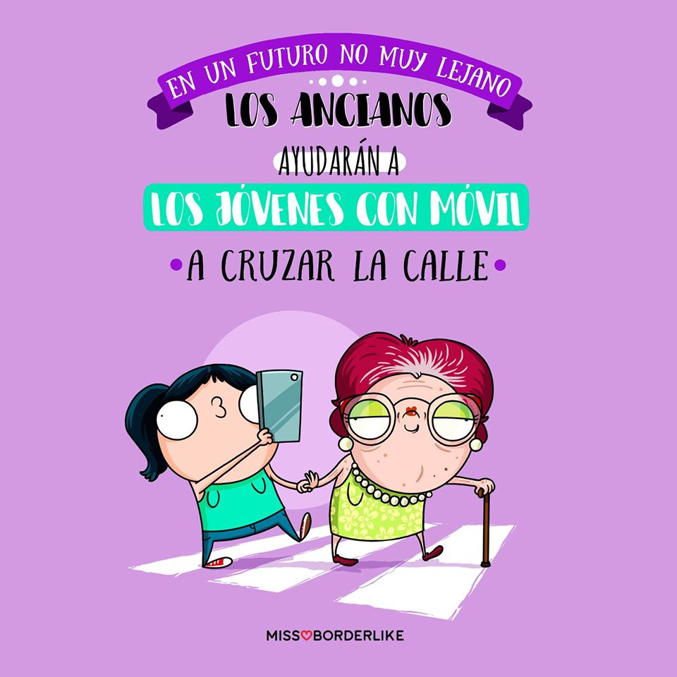 a los jóvenes con móvil a cruzar